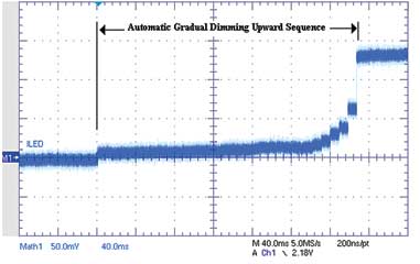 图7 典型的NCP5623自动向上渐进调光过程(每级8ms)
