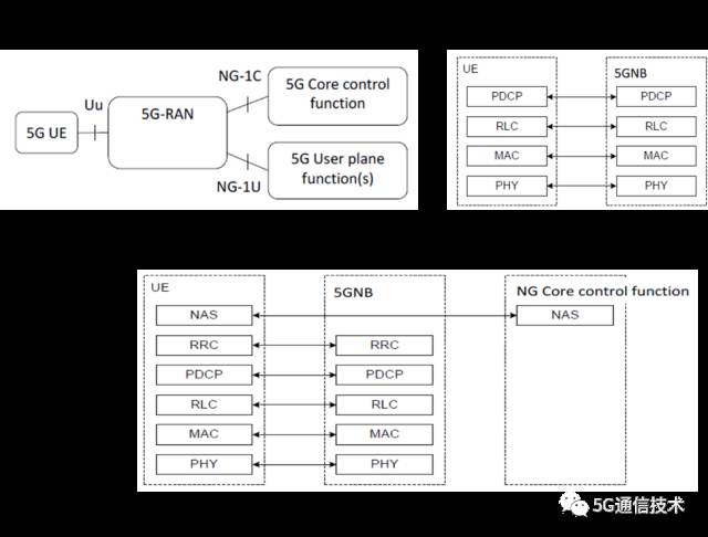 - 架构5下,LTE升级到R15版本,提供5G服务,采用新型5G核心网。此架构更多地在RAN3(网络研究研究)的工作范围内,LTE系统直接采用R15的协议栈就可以了,无需RAN2再对RLC/MAC/RRC等协议进行更多研究。