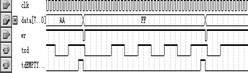 图3 发送模块时序图 3.4接收程序设计 接收电路比发送电路要复杂,接收电路要实时检测起始位的到来,一旦检测到起始位到,就要将这一帧数据接收下来。接受电路一共设计有三个并行进程如图4所示,其中 进程1 负责产生9600bps波特率,使系统能够在9600的波特率与外界系统通讯。进程2 产生接收信号RXD的完成标志位,每次在接收到帧的起始位时,标志位RXDF变高,在完成接受数据后,标志位RXDF变低。进程3负责将RXD信号输入的10位串行数据,依照10位的帧格式,先去掉串口的接收起始位和接收结束位,取其中的8位有效数据,并将8位有效数据进行串并转换,变成并行数据后,由8位数据总线DATA0~DATA7并行输出。