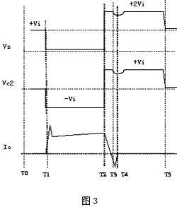 4)在T2~T3期间,反射在初级的负载电流Io下降,其下降的速率由初级与次级间的漏感决定,该电流通过箝位电容C2、箝位二极管D3回流至电源,流过电容C2的电流引起其端电压上升(设其增量为dVS),导致B点电位变化为2VI+dVS。