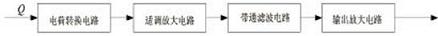出砂预处理放大电路的总体设计框图如图1所示,整个预处理电路主要由电荷放大器、适调放大电路,滤波电路、输出放大电路等组成。