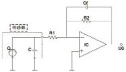 其中,R1为电缆电阻,C为传感器等效电容,为反馈电容,R2为反馈电阻用于Cf的放电。(注:电荷放大器的上限截止频率还与电荷放大器采用的运算放大器有关。)