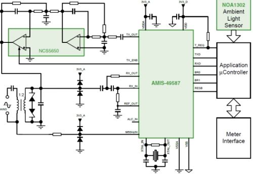 有利的是,设计人员采用安森美半导体的AMIS-49587电力线载波(PLC)调制解调器、PLC线路驱动器NCS5650和诸如NOA1302这样的环境光传感器,基于电力线轻易地构建联网型LED街灯智能控制系统(图4)。其中,安森美半导体的环境光传感器包含的输出类型,如NOA1302和NOA1305提供的是数字输出,而NOA1211为模拟输出。这些光传感器的工作电流极低,在100流明光输出条件下分别仅为58 μA、550 μA和115 μA,因而对系统能效的影响极小。