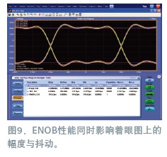 ENOB效果也可以在眼图上看。ENOB性能同时影响到眼图的幅度和抖动。5 Gbps的眼图表示了一个与PCIe(外设部件快速互连)2代或USB(通用串行总线)3.0相关的信号码率(图9)。