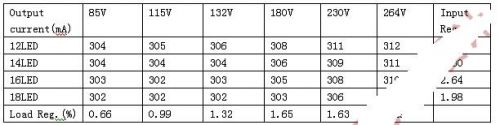 表1:输入电压调整率及负载调整率。