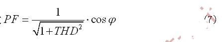 系统PF值的高低,主要与输入电流和输入电压的相角差和输入电流的THD两个因素有关。计算公式为: