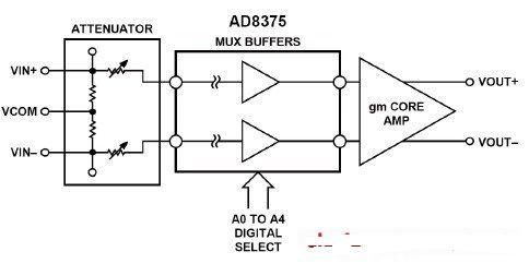 AD8375是一款差分可变增益放大器,由一个150 数字控制式无源衰减器后接高线性度跨导放大器组成,如图10所示。