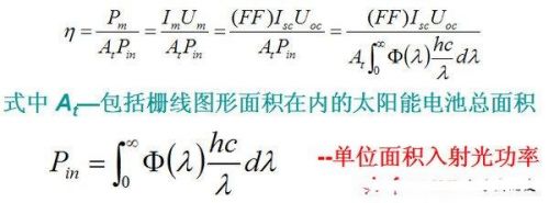 在上式中,如果把At换为有效面积Aa(也称活性面积),即从总面积中扣除栅线图形面积,从而算出的效率要高一些,这一点在阅读国内外文献时应注意。