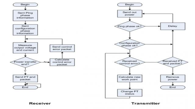 在软件方面,图10显示无线充电器发射器和接收器的简要流程图。