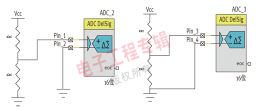 图4右边的电路设计好于左边的。在右面的电路中,-ve直接连接到靠近分压电阻的参考电压。右面的电路可以帮助降低测量时的噪声的和由于PCB布局或走线阻抗带来的误差等等。