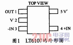 LT6107的最大输入偏置电流仅为40nA,失调电压仅有250μV,其增益可由两只外部电阻调节设置,精度高于1%,输入电压范围为2.7V~44V,能适应-55℃~+150℃的工作环境,工作电流仅为65μA。