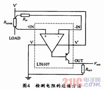 注意,影响输出的因素有许多,LT6107至少要有1mA的输出,还必须限制最大输出电流,因此所选的检测电阻和必须合适,一旦输入有故障,外部会被钳制。