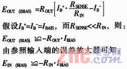 偏置电流流入内部运放的正输入,流入运放的负输入,由偏置电流和导致的输出误差为: