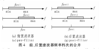 后置滤波器的情形与之类似,如果min(fprej)<max(fprei),则可将fprei和fprej合为一档,取新档的转角频率fpost如图4(b)所示:
