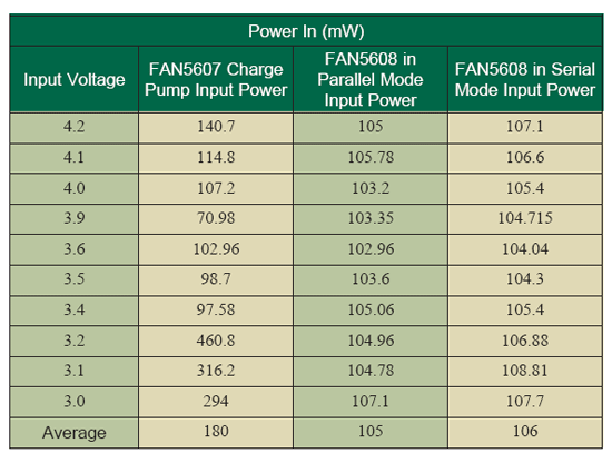 于驱动并联阵列,因为输出电压与充电电容的数量有关。电荷泵有一些优点,它们一般只需要较小的板空间,因为电容可以小至0402封装大校这是一个很显著的优势,尤其是在终端产品为便携式设备时。对便携式无线电产品而言,还有一个好处是产生的EMI更少。即使使用屏蔽电感,感应式升压调节器产生的EMI噪声也超过了普通电荷泵的。这可是手机等便携式接收器的一个重要考虑事项。FAN5607产生的EMI噪声极少,这使它非常适合于驱动手机显示屏中的白光LED。不过,若对板空间和EMI的要求都不太严苛的话,电荷泵可能就不是适当的解决方案。因为,对这种方案来说,要减小尺寸,就得牺牲效率。电荷泵不是最高效的升压调节器,故在计算电池功耗时,必须考虑到这种影响。