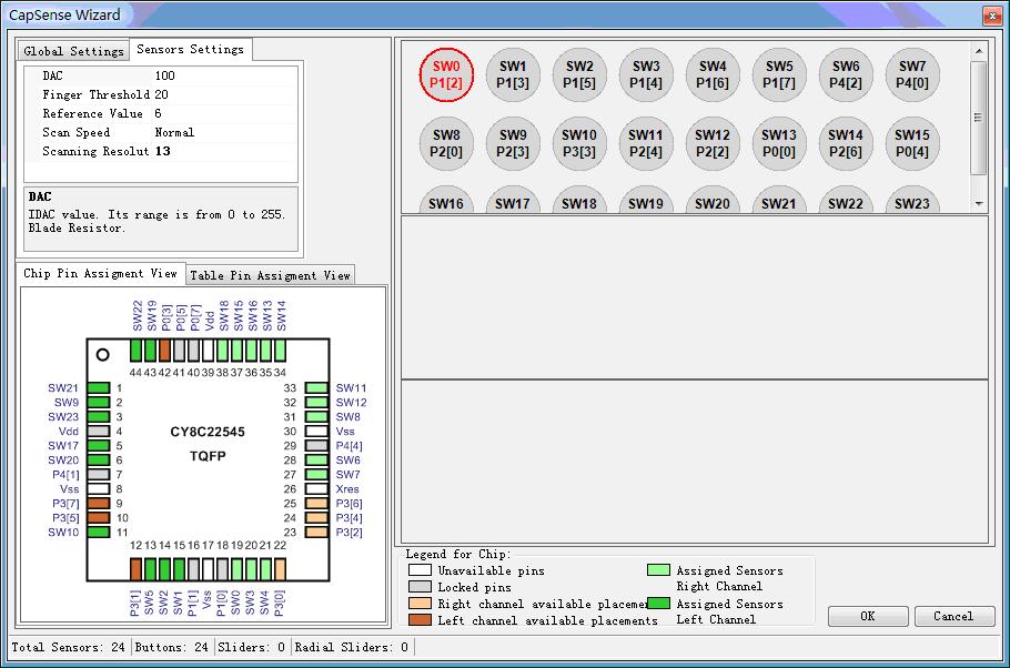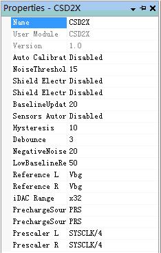 Reference R和Reference L参数用来设置比较器端的比较电压来源。IDAC Range用来设置IDAC的大小区间。结合单个触摸的IDAC配置共同来影响IDAC的大小。IDAC Range设置的越大,相应的IDAC的输出电流就越大。