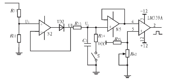 通过高频降压互感器检测脉冲升压变压器原边电压得到电压信号Ui,将Ui作为过压保护电路的输入电压,将过压保护电路的输出信号接到DSPF2812的引脚,这样迫使系统重新启动,实现过压保护的目的,以达到保护负载的安全。