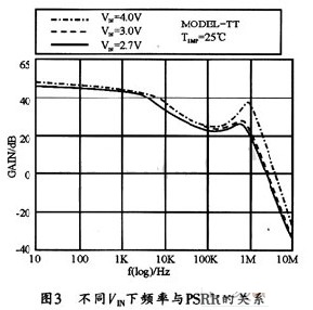 为了*估所设计电路的性能,本系统利用Hynix 0.5μm CMOS工艺进行仿真。图2给出了HSPICE仿真在不同电源电压下频率与增益的比较结果,仿真结果表明在很宽的频率范围内.增益超过60 dB。