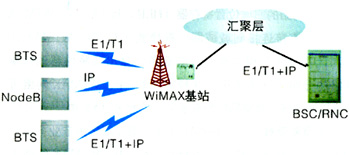 少的特点进行语音业务的接入。对于新兴运营商,可利用WiMAX设备取代光缆和铜缆,在客户端配合IAD、综合AG等设备快速布局,打破传统固网运营商对语音业务的垄断。 图8 WiMAX作为NGN网络的接入 3.3数据业务的接入补充 目前,移动宽带数据业务主要指移动增值数据业务,包括移动互联网、消息类、游戏、企业应用、视频等多种业务。随着短信和移动游戏类业务的增长,用户对移动宽带数据类业务提出了更高的数据传输带宽需求。WiMAX可以作为数据接入业务的一个有力的补充手段。 3.4移动网络基站传输 WiMAX移动应用模式如图9所示,其采用符合IEEE802.16e标准的设备,根据标准其工作频段应在6GHz以下。WiMAX移动应用模式是面向个人用户的,提供支持切换和QoS机制的无线数据接入业务。其网络架构同WLAN、3G无线接入网络相似,可以通过蜂窝组网方式覆盖较大区域。在这种应用模式下,可以将WiMAX看作一种无线城域网、多点基站互联和回运的支持手段;同时,由于WiMAX的非视距特性,能够在城市中提供很好的应用,配合运营商实现快速建网的目的,如针对我国城域网建设的实际情况,可建立采用WiMAX接入技术的宽带SDH城域网。 图9 WiMAX作为移动网络基站传输 3.5WiMAX与3G融合组网方案 WiMAX网络和移动蜂窝网组网的网络架构,如图10所示: 图10 WiMAX与3G融合组网 依据与移动蜂窝系统结合的紧密程度,移动蜂窝网络和WiMAX网络组网方案可以分成松耦合和紧耦合两大类。考虑耦合程度从浅到深,移动蜂窝网络和WiMAX网络可以有六个工作模式: (1)统一计费和用户管理模式。 (2)给予蜂窝移动网络的WiMAX网络认证和计费模式。 (3)WiMAX网络接入移动蜂窝网络的标准分组域业务模式。 (4)业务一致性和连续性的模式。 (5)无缝的分组域业务切换模式。 (6)WiMAX接入到移动蜂窝标准电路域模式。 前两种模式属于松耦合,后四种模式属于紧耦合。在模式(1)中,在两个系统间外挂一个附加的网络,AAA在附加网络中实现,完成鉴权和计费功能;在模式(2)中,WiMAX作为移动蜂窝网络互补网络,其认证和计费需要用移动蜂窝网络的归属位置寄存器(HLR)和AAA等,WiMAX流量出口直接连接到城域网;在模式(3)中,WiMAX认证和计费方式与模式类似,其业务流量出口将由移动蜂窝网络的分组域网关负责;在模式(4)中,WiMAX网络可以直接访问移动蜂窝网络所有业务;在模式(5)中,WiMAX网络切换要受蜂窝移动网络的控制,其VoIP语音业务可以切换到移动蜂窝网络中;在模式(6)中,WiMAX网络无线资源和移动蜂窝网络中无线资源将被统一调度。 WiMAX组网可以先考虑采用模式(1),再通过移动蜂窝网络升级,逐步演进到模式(4)和(5),模式(6)是终极发展目标。WiMAX终端认证计费功能都在移动蜂窝系统中相应的设备中实现。在松耦合场景下,WiMAX移动性管理由WiMAX专有设备实现,而在紧耦合场景下,移动蜂窝中的设备也要参与WiMAX终端的移动性管理。 4、WiMAX的商业发展路线 从WiMAX的技术特点分析,WiMAX市场的运营和商业模式需要分三步走,即发展的三个阶段: (1)室外型固定宽带无线接入市场:基于802.16d的室外固定终端作为建筑物的接入手段,作为固定网络的辅助,以企业用户为主。 (2)室内型固定宽带无线接入市场:用户可以自行安装的基于802.16d室内固定终端上市,降低运营商建网成本,向家庭用户提供接入业务。 (3)便携移动模式应用市场:基于802.16e的芯片内置笔记本、PDA等可携带终端,提供移动性,针对个人用户提供移动宽带数据业务。