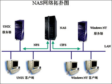 NAS被定义为一种特殊的专用数据存储服务器,包括存储器件(例如磁盘阵列、CD/DVD驱动器、磁带驱动器或可移动的存储介质)和内嵌系统软件,可提供跨平台文件共享功能。NAS通常在一个LAN上占有自己的节点,无需应用服务器的干预,允许用户在网络上存取数据,在这种配置中,NAS集中管理和处理网络上的所有数据,将负载从应用或企业服务器上卸载下来,有效降低总拥有成本,保护用户投资。