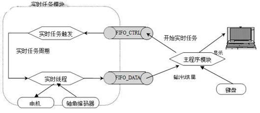 运动控制子系统采用了RT-Linux(Real Time Linux)实时操作系统,其软件结构如图4所示,主要包括两个模块:主程序模块、实时任务模块,主程序模块是linux应用程序,实时任务模块是 RTlinux下的实时进程。两个模块也是两个进程,通过管道(FIFO)进行通讯等。