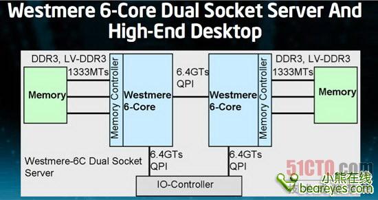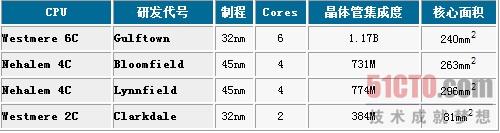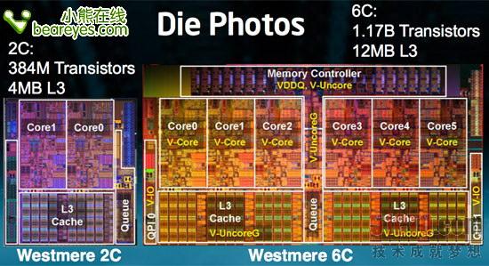 根据Intel透露的信息,在2010年,所有的台式机、工作站、服务器即产品将全面部署新的Westmere核心。6核心的Westmere会是一个11.7亿晶体管组成的可怕怪物,它的核心面积有240平方毫米。