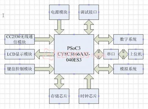 嵌入式网关主控制板采用Cypress公司提供的PSoC 3可编程混合信号微控制器开发板CY8CKIT030(是否应为CY8CKIT003),嵌入式网关汇总各信息采集节点上报的数据信息,然后经过串口通信上报到上位机,视功能需要也可以添加GPRS远程无线传输模块。嵌入式网关主控制板具备各种外设接口,可实现数据的即时显示和用户手动控制,并可扩展外接各种需要的功能模块。嵌入式网关模块可采用电池供电,或者太阳能电池板供电,或者220V常用电源降压供电。