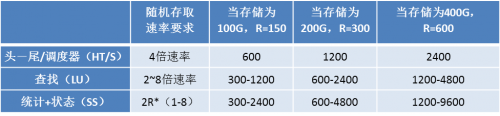 尾高速缓存的调度器数据库进行高效寻址。 表1显示了一个路由器中不同存储子系统的随机存取速率要求,单位为百万次存取/秒(MT/s)。R是数据包速率,单位为百万数据包/秒(Mpps)。