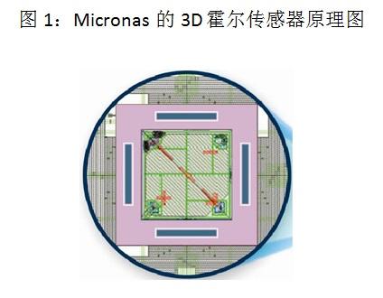 除在Z方向上测量磁场的霍尔元件以外,该产品还在X和Y方向有垂直霍尔元件。如果用一个附加的磁通量收集器来在X和Y方向收集磁场分量,Micronas的独立垂直霍尔元件能够消除通量收集器造成的场线扭曲,并且改进传感器的动态范围和表现。垂直霍尔元件的改进也将改进偏置补偿和提高精确性,同时降低能耗。