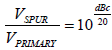 了解谐波杂散的确切位置后,就可以用频谱分析仪来确定其相对于原始正弦信号的幅值。注意杂散分量的幅值相对于原始信号的幅值的关系是以dBc为单位。例如,如果原始信号测量值为-12dB,而杂散分量的测量值为-71dB,则dBc值为-71-(-12)=-59dBc。于是,杂散分量和原始信号之间的电压关系即为: