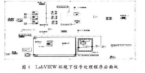 器探测到的信号。将3个通道的信号在同步节点下送入系统程序,程序后面板程序如图4所示。