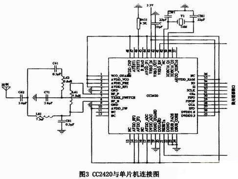 Zigbee通信模块CC2420与单片机的连接电路,如图3所示。