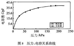 ,在不同的温度下拟合的电容值和温度的关系如表1所示(加入1%的白噪声)。 1可见,拟合的电容误差小于1%。由此可见,在不同的时刻测得UO(t),通过曲线拟合得出参数RC。再给电路加小信号直流电源,测出R值,即求得C,通过C值则可知被测环境的压力。图5为350℃时,不同的压力所对应的电容的理论值和实验值,从实验数据(表2)可得,在测压的过程中,利用模型识别的方法,误差较小,其测压误差小于2%。 3结束语 基于模型识别技术的高温微型压力传感器电路简单、工艺成本较低、体积小、可批量生产、准确度高。该传感器避免了电阻式高温压力传感器的自补偿电路在高温环境下工作时热灵敏度漂移引起的误差,也避免了其它电容式高温压力传感器非线性补偿电路在高温环境下工作。该传感器适合在各种高温环境下测量气体或液体的压力。