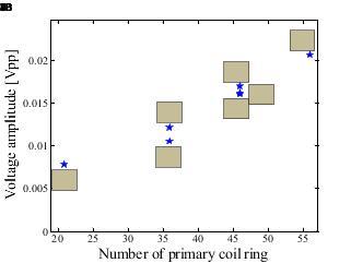 图7: 次级小线圈输出电压与初级线圈匝数保持函数关系