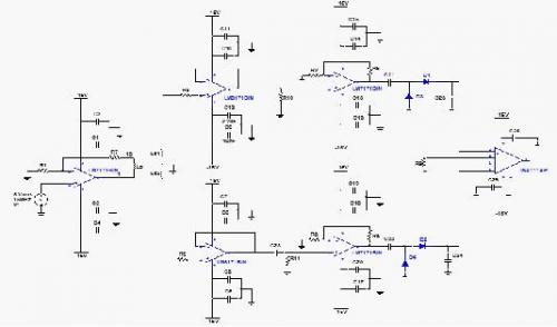 为表征电感式生物传感器,我们开发出一个适合的信号调理电子元件。为使电流值恒定,避免线圈电阻或电感变化引起峰流,我们采用振幅5Vpp、频率15MHz的正弦信号,通过电压-电流转换器驱动初级线圈。在退耦后,次级线圈信号经非反相放大器放大,提供信号修整所需的振幅。为保证极性绝对为正,放大信号通过钳位电路升压,然后被修正;使用钳位电路可取得更高的响应性能。最后,用一个差分放大器对两个被修整的信号进行放大和去除处理。图8所示是上面讨论的电子元件的机制