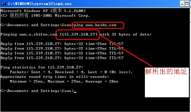 可以通过ping命令看出解析是否正确: