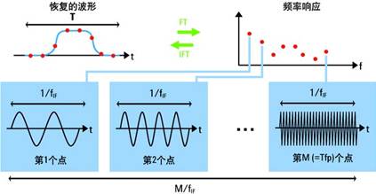 使用 TDR示波器测量时,为了在物理采样频率 fP下获得等效采样时间 fE,测量需要多花 fE/fP倍的时间来完成(如图 7所示)。当测量时间长度为 T时,则需要测量 T x fE个数据点 (M),测量时间为 T x fP/fS。使用 VNA进行测量,如要获得相同的时域响应特性的话(如图 9所示),则需要以 1/T作为频率扫描的步长,并测量 M*2个数据点。单个数据点的测量时间主要由带通滤波器决定,等于 1/fIF。因此总测量时间为 M x 1/fIF,等于(Tx fE)x 1/fIF。